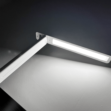 Die platzsparende Leuchte wirkt im Alltag richtig wertig: Lederoptik am Gehäuse mit angenehmer Haptik, nichts erinnert an Billig-Plastik. Der flache Sockel steht stabil und lässt sich bei Bedarf unter Tastatur, Monitorständer oder Notizblock einfach unterschieben. Der mehrfach verstellbare Arm klappt an den Gelenken so flach zusammen, dass die Lampe in jede Schublade passt.